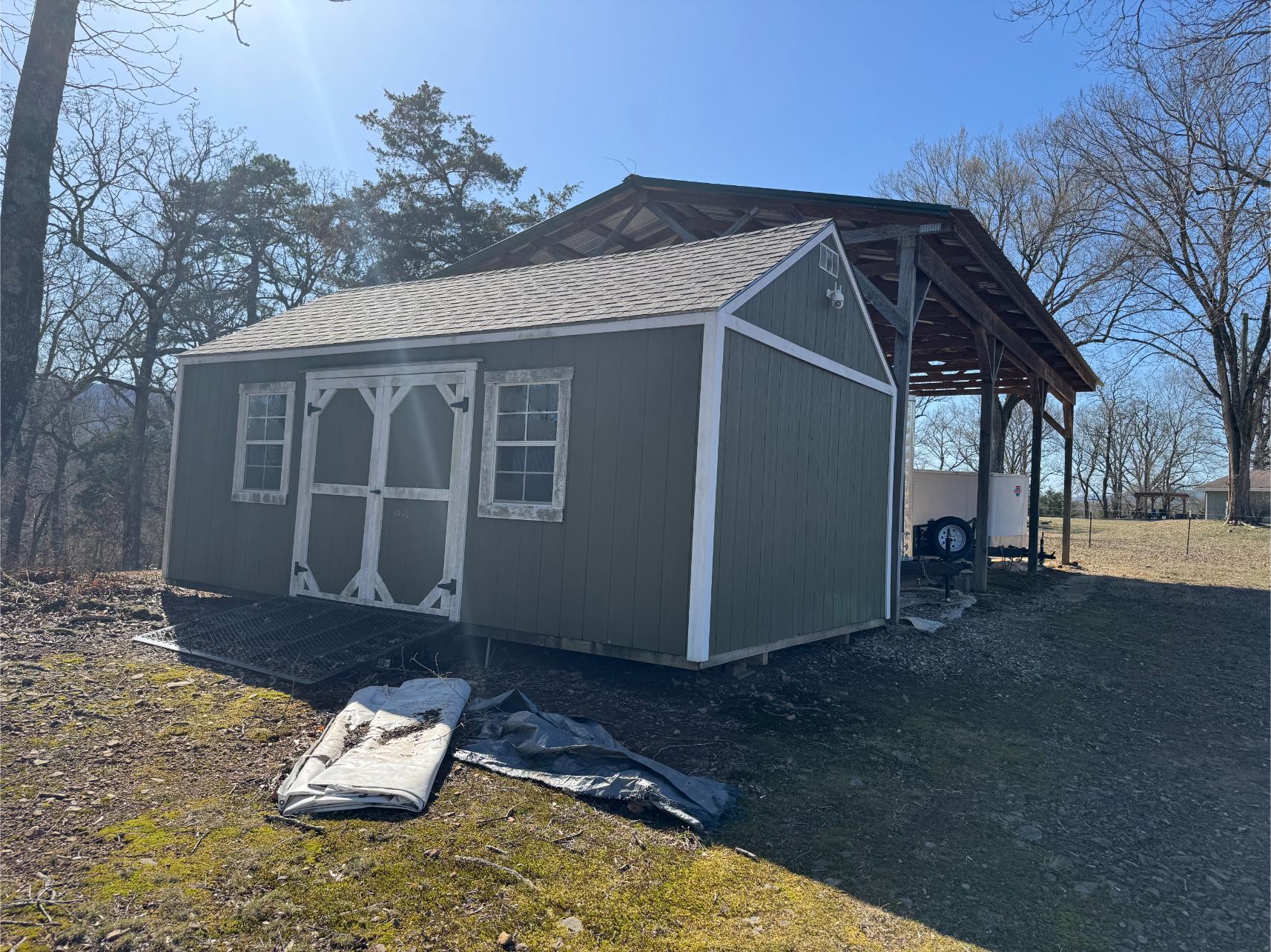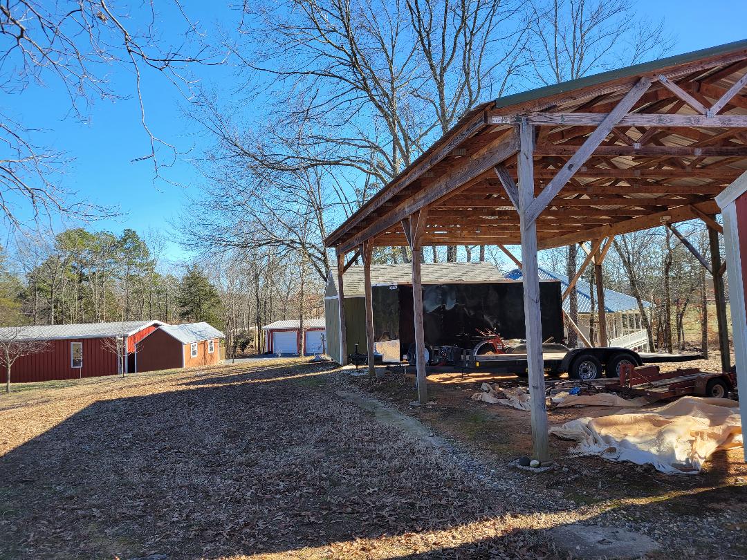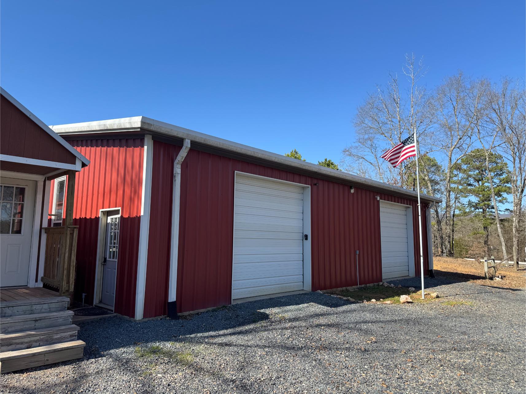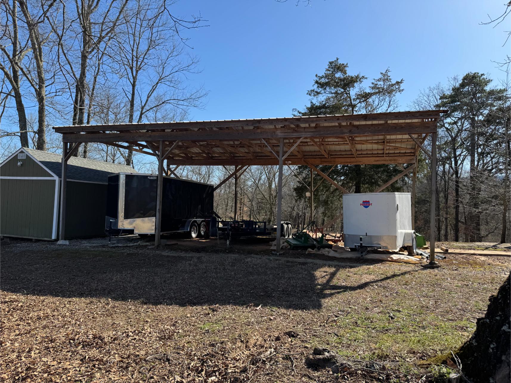 The property includes a variety of outbuildings to enhance your lifestyle. A 30’x50′ insulated metal building with a slab floor offers two 10′ roll-up doors, a loft for extra storage, and a 2-post 8,000 lb lift. Additionally, there is a 24’x36′ insulated 3-car garage with a slab floor and two roll-up doors, a 22’x40′ pole building, a 12’x32′ unfinished cabin that would make an ideal guest house, a 12’x20′ garden shed, a 2-car carport, and an 8’x12′ well house. The property is secured with an automatic gate and spans approximately 6.4 acres, providing ample space to explore and enjoy the outdoors.