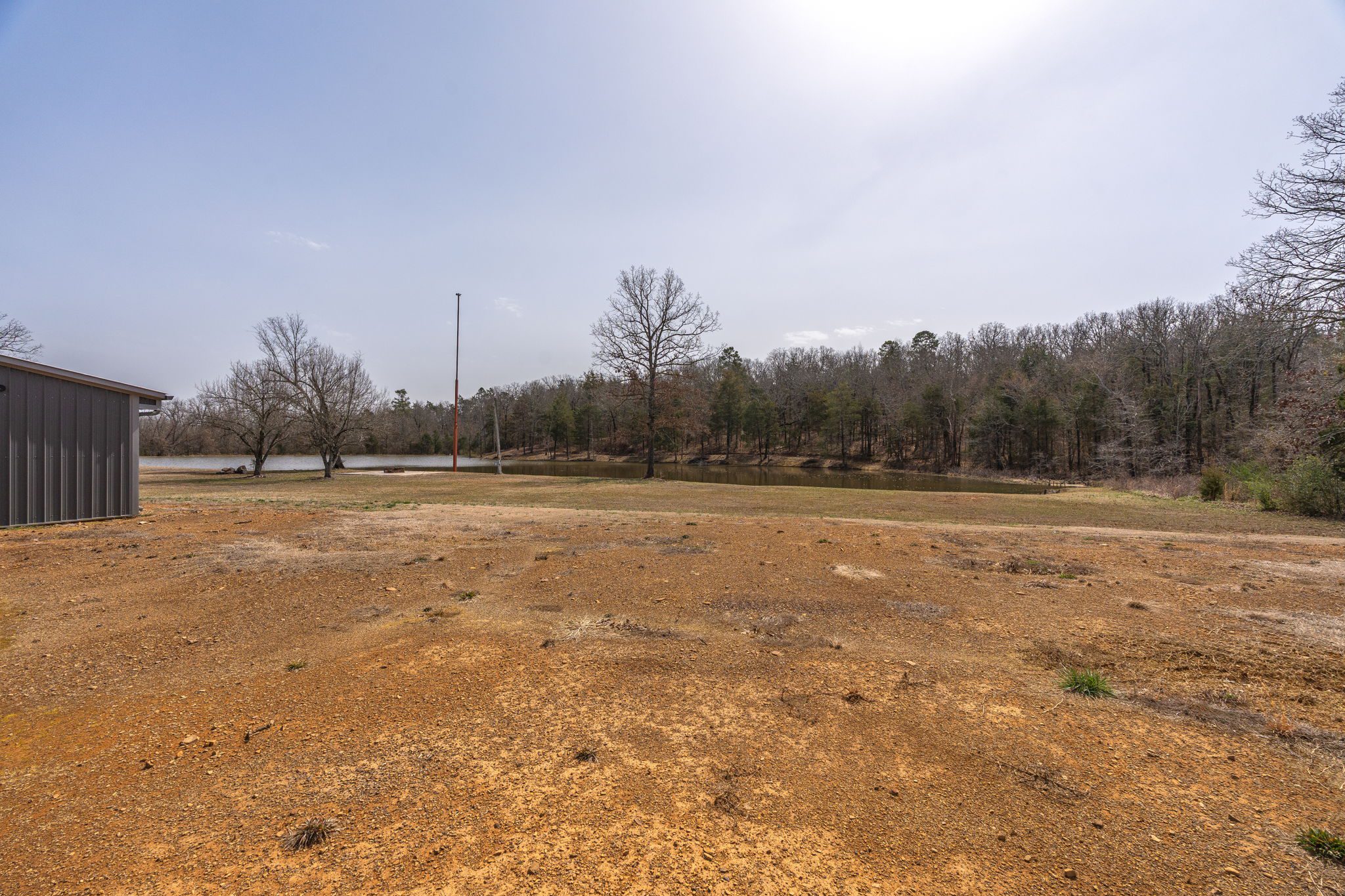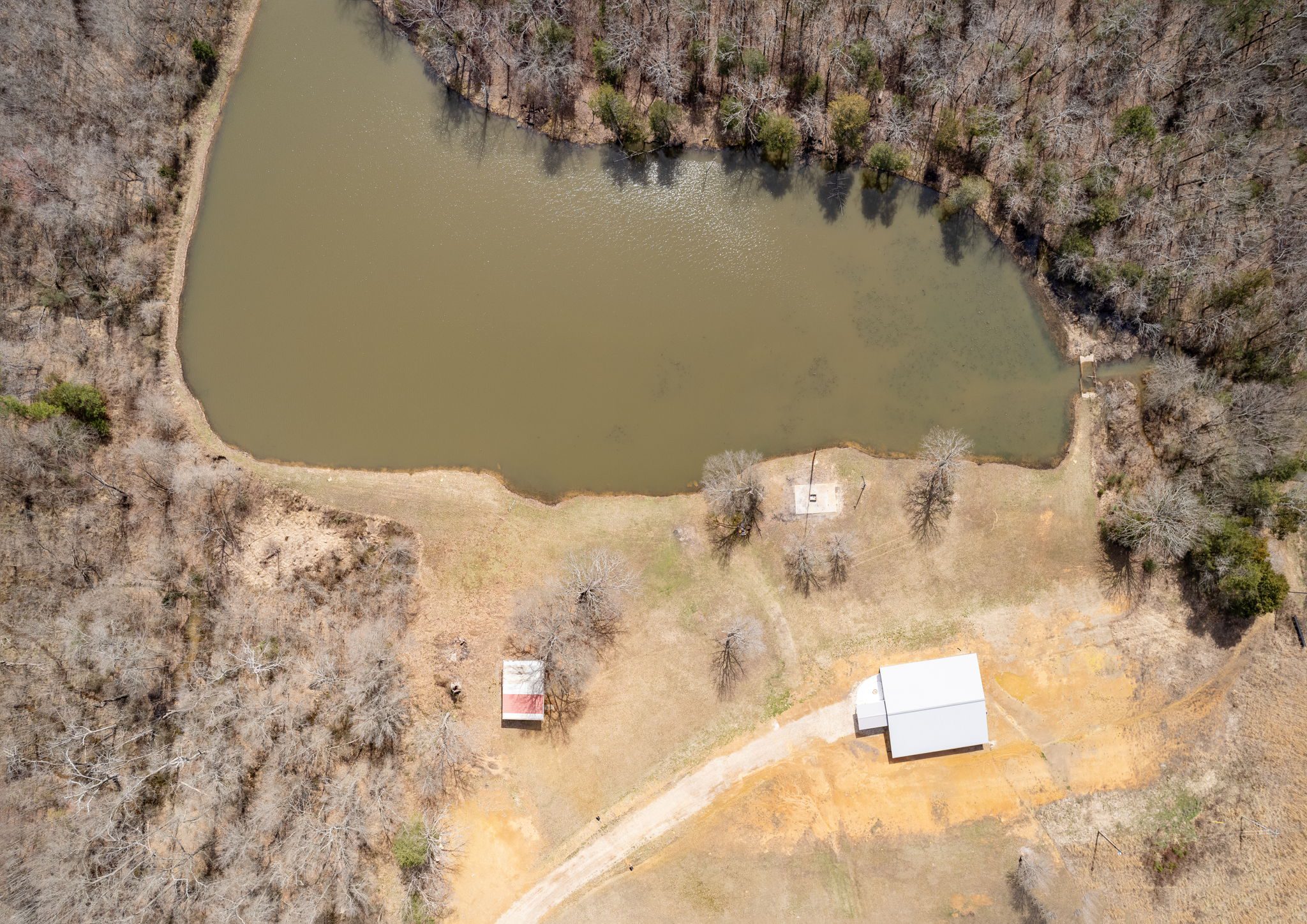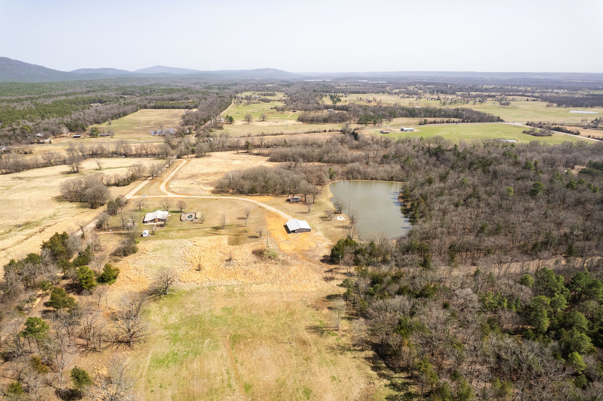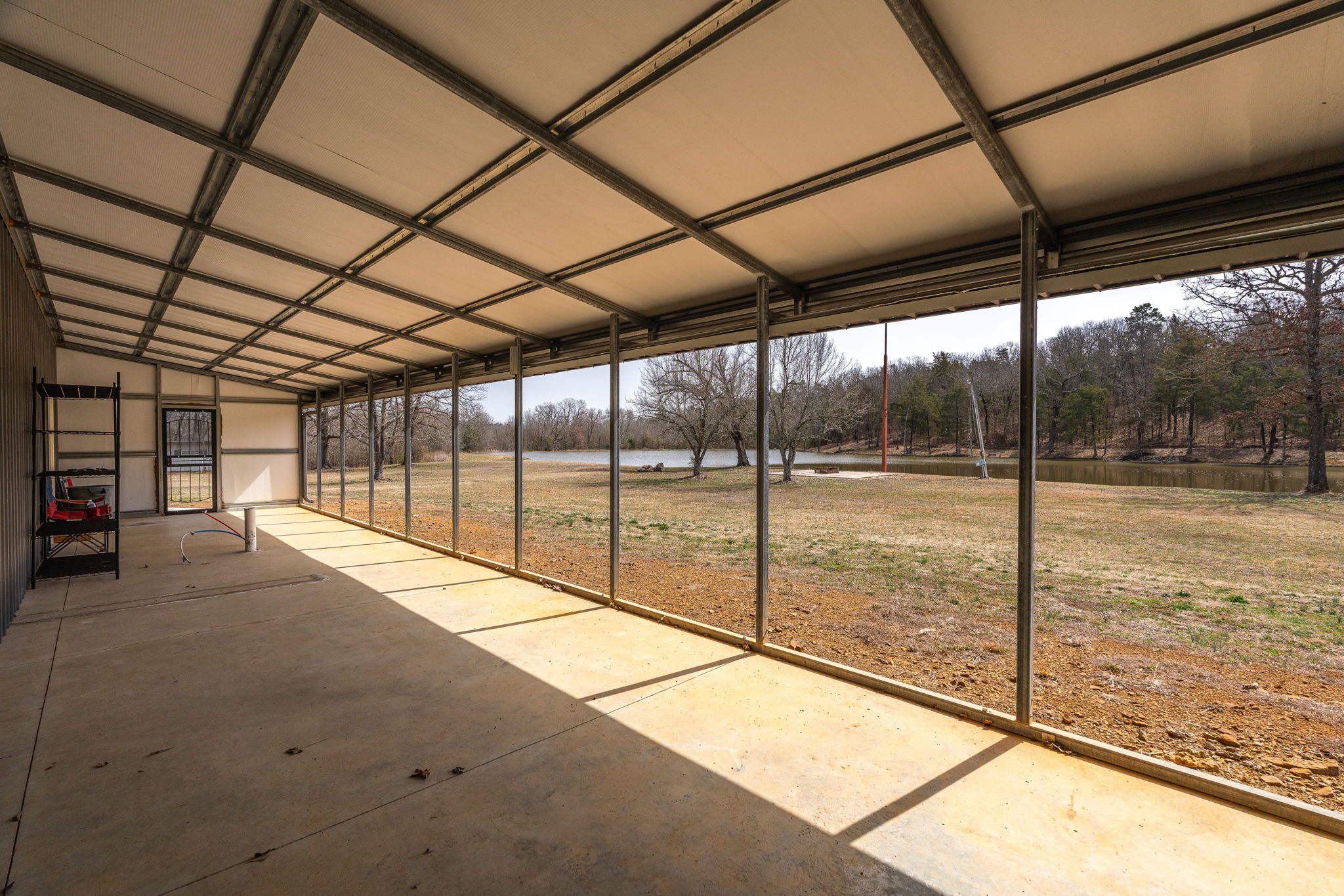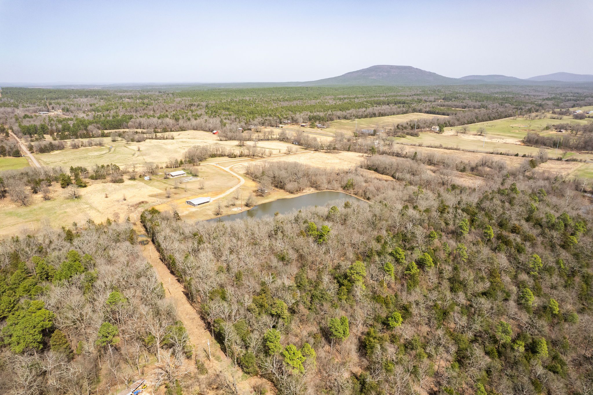 Lovely appx 44-acre retreat or home featuring a beautiful 2,064 sf, 3-bedroom, 1-bath barndominium built in 2023. This stunning property offers the perfect blend of natural beauty and modern living, with a large open kitchen featuring quartz countertops and an expansive open living area perfect for entertaining. The home has luxury plank flooring with high quality carpet in the bedrooms and porcelain tile in the bathroom. The home also includes an approximately 12×50 covered porch for relaxation and an approximately 12×50 enclosed carport for vehicles and storage. The property boasts a 3-acre pond for fishing and recreation, borders a creek offering scenic views and tranquility, and has open land ideal for building, planting, or raising livestock. Additionally, a wooded area with trails provides endless opportunities for hiking and exploration. Perfect for nature lovers seeking tranquility, families looking for space to grow, or investors interested in a unique property with potential for development.