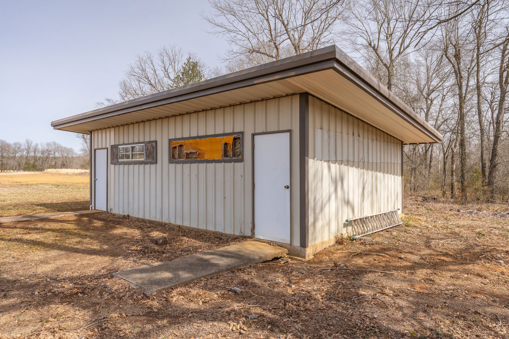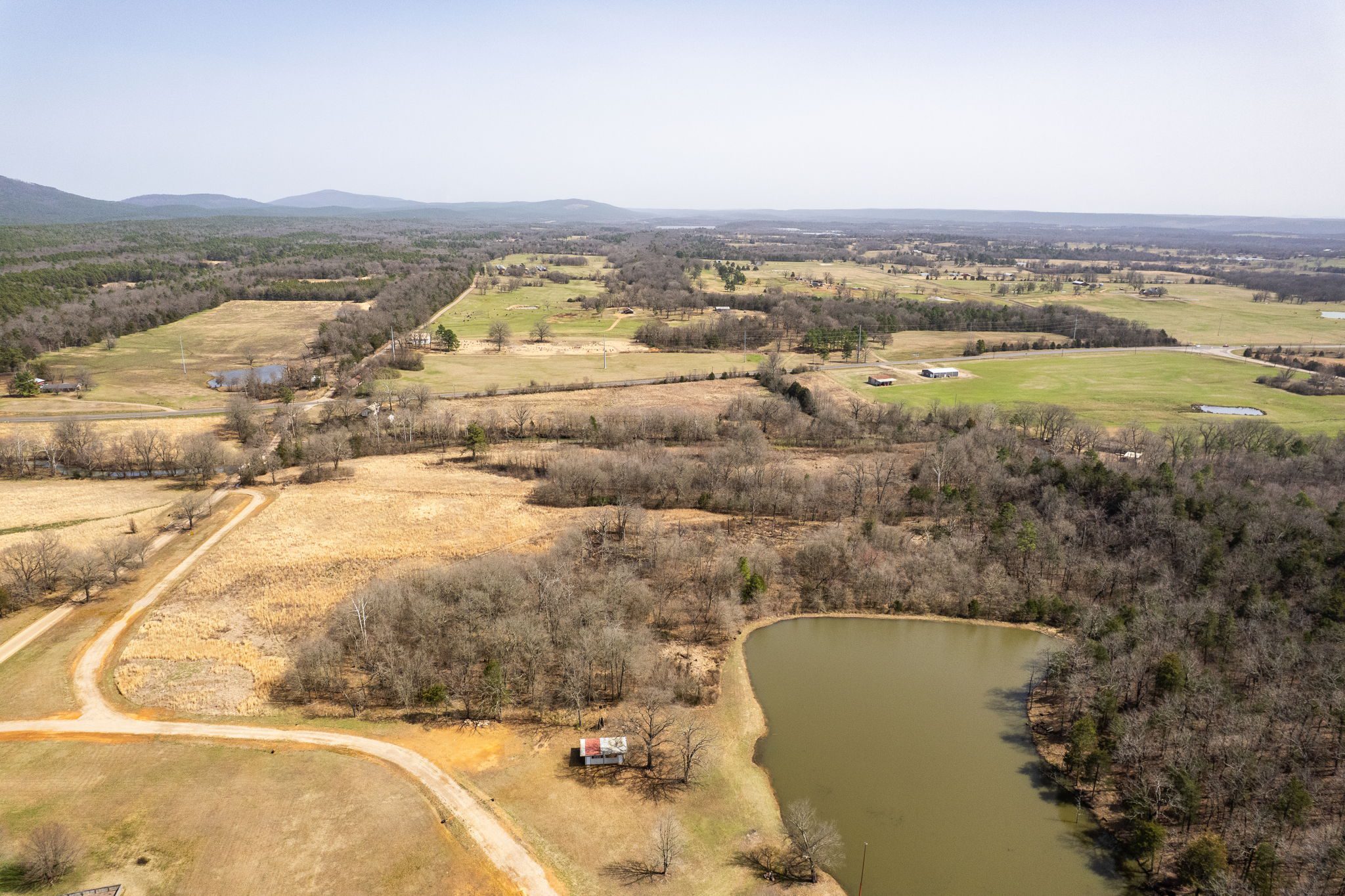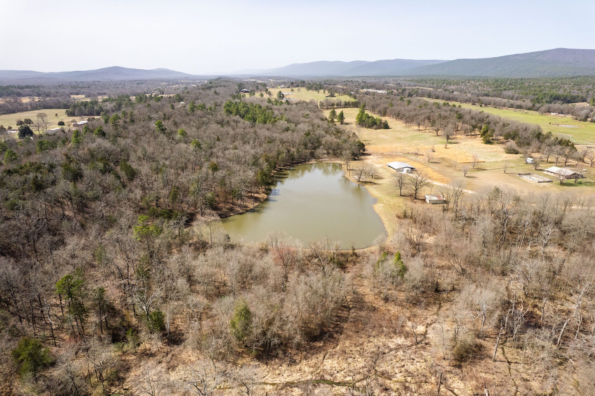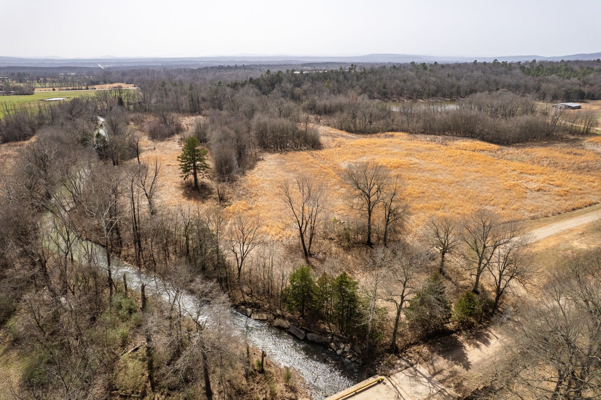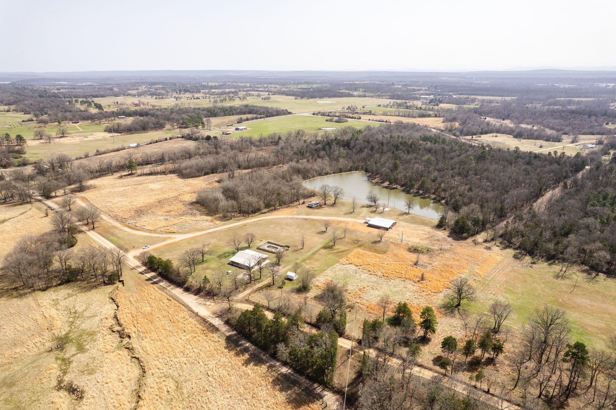 Lovely appx 44-acre retreat or home featuring a beautiful 2,064 sf, 3-bedroom, 1-bath barndominium built in 2023. This stunning property offers the perfect blend of natural beauty and modern living, with a large open kitchen featuring quartz countertops and an expansive open living area perfect for entertaining. The home has luxury plank flooring with high quality carpet in the bedrooms and porcelain tile in the bathroom. The home also includes an approximately 12×50 covered porch for relaxation and an approximately 12×50 enclosed carport for vehicles and storage. The property boasts a 3-acre pond for fishing and recreation, borders a creek offering scenic views and tranquility, and has open land ideal for building, planting, or raising livestock. Additionally, a wooded area with trails provides endless opportunities for hiking and exploration. Perfect for nature lovers seeking tranquility, families looking for space to grow, or investors interested in a unique property with potential for development.
