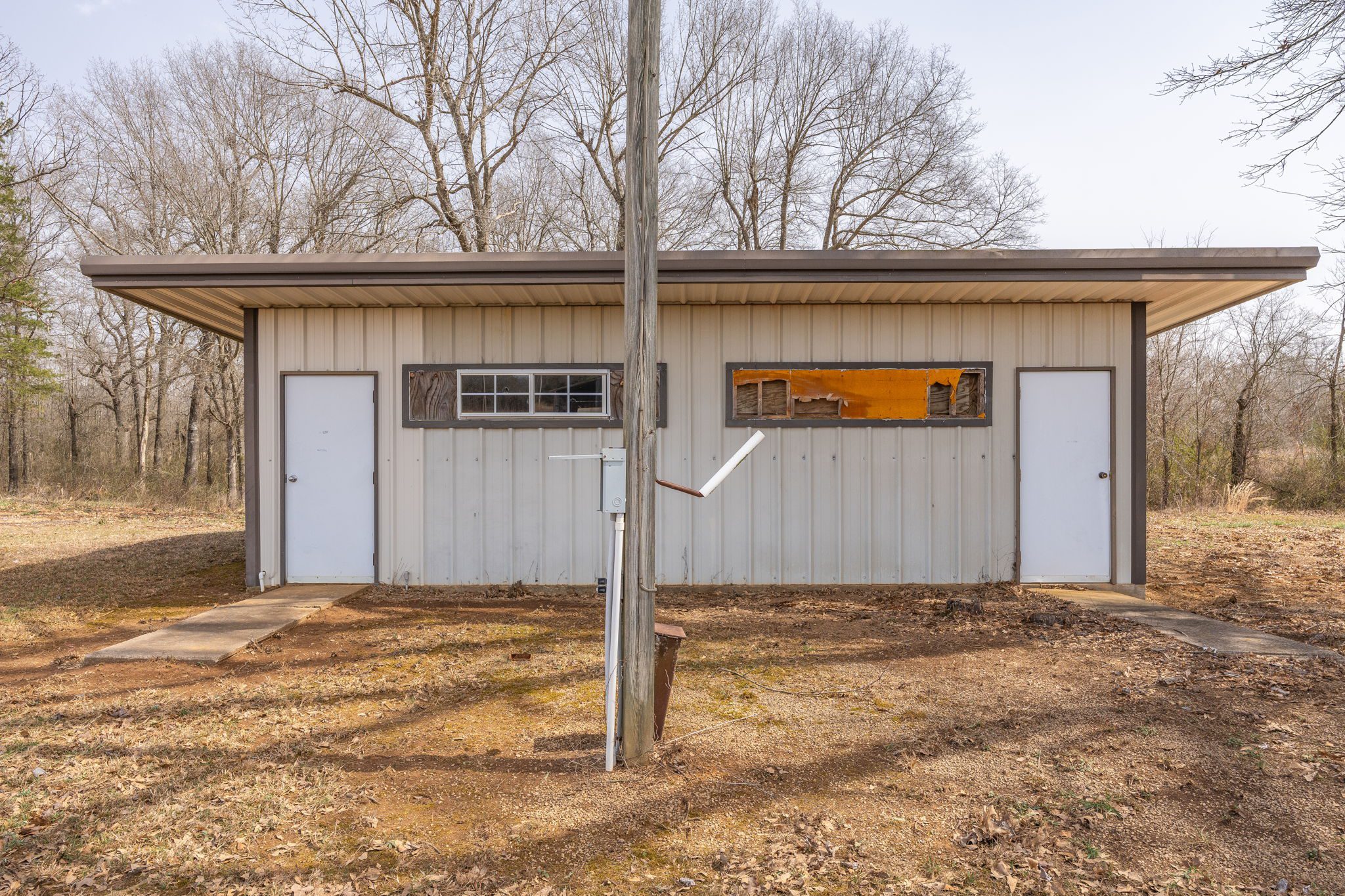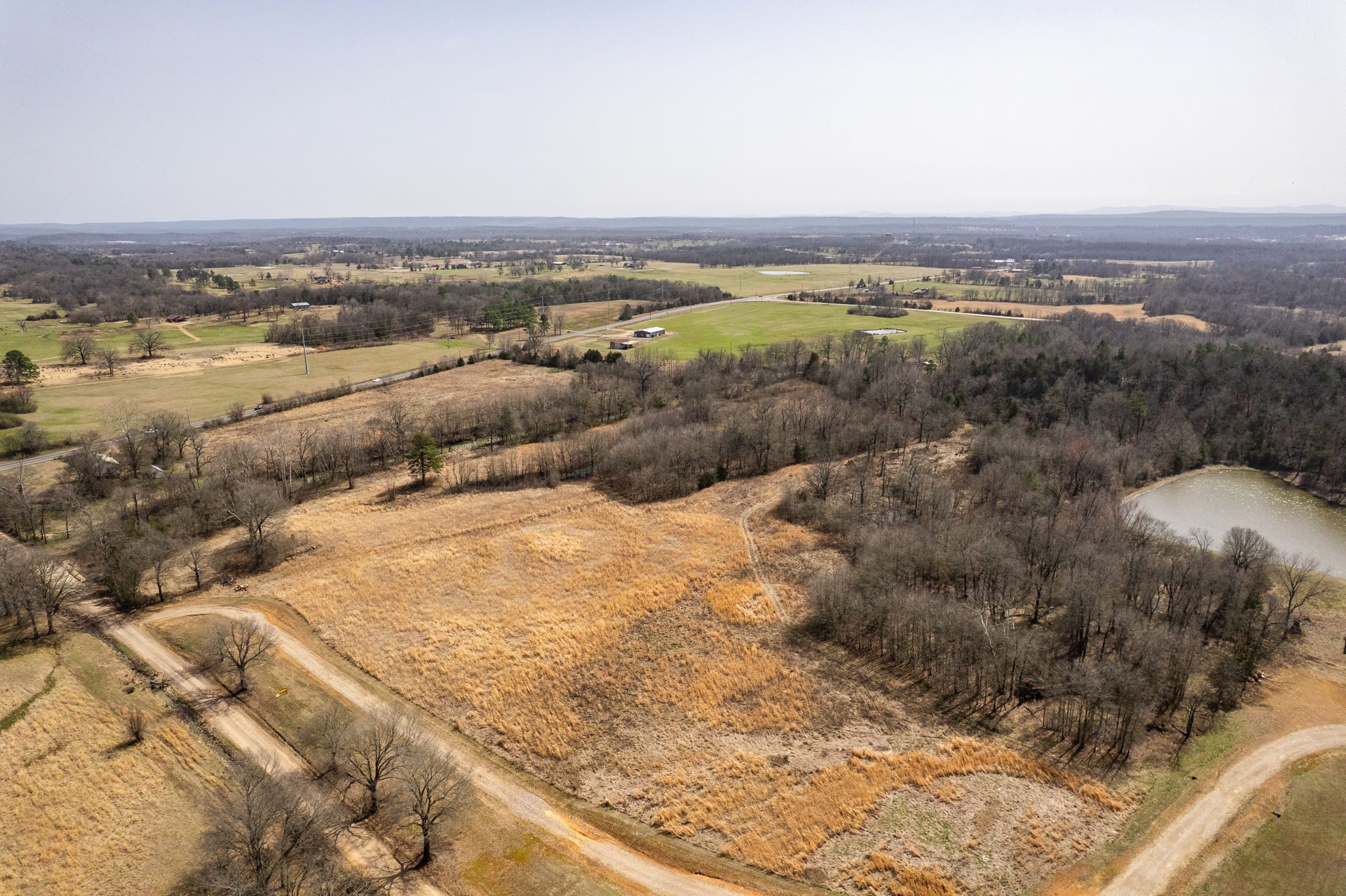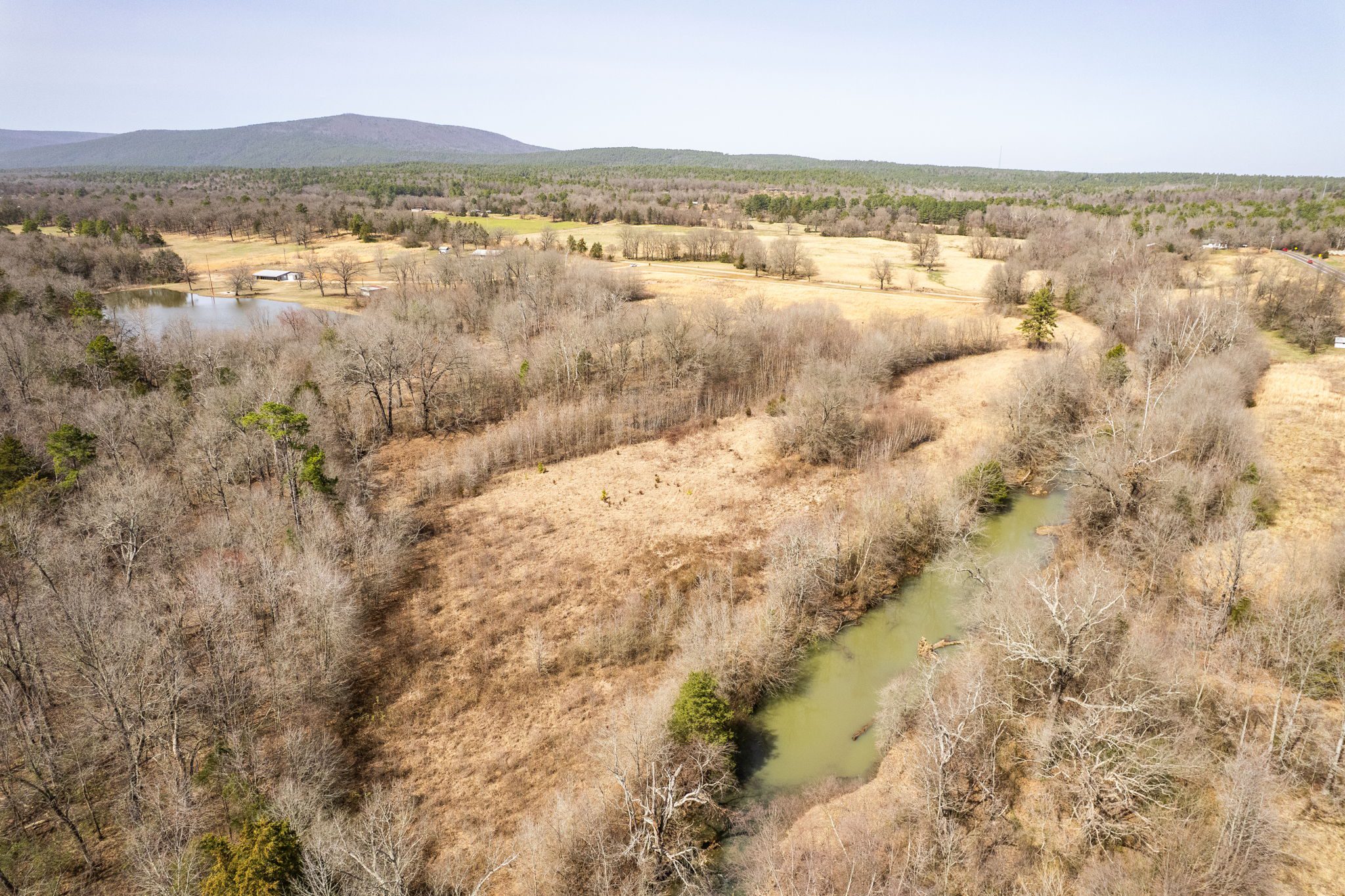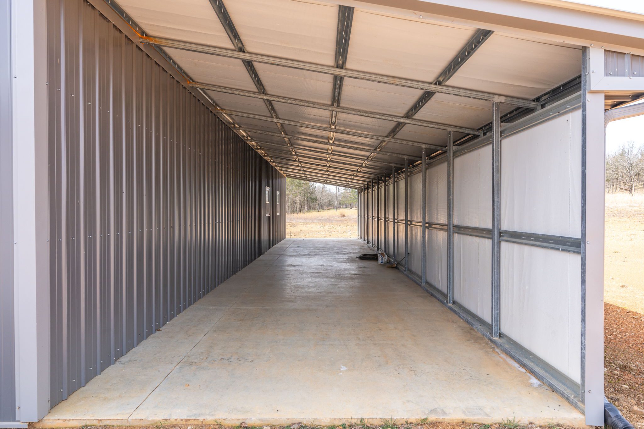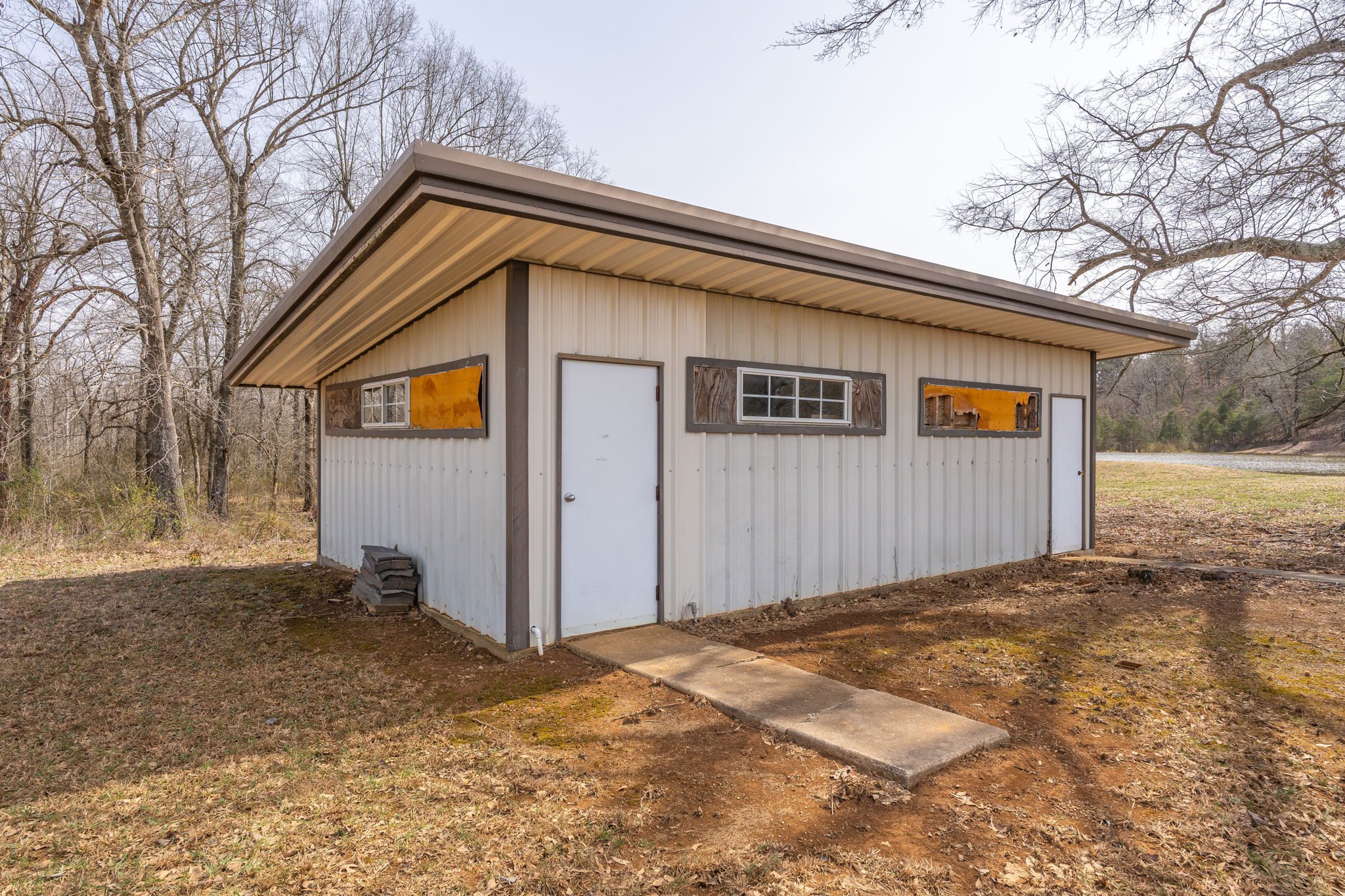 Lovely appx 44-acre retreat or home featuring a beautiful 2,064 sf, 3-bedroom, 1-bath barndominium built in 2023. This stunning property offers the perfect blend of natural beauty and modern living, with a large open kitchen featuring quartz countertops and an expansive open living area perfect for entertaining. The home has luxury plank flooring with high quality carpet in the bedrooms and porcelain tile in the bathroom. The home also includes an approximately 12×50 covered porch for relaxation and an approximately 12×50 enclosed carport for vehicles and storage. The property boasts a 3-acre pond for fishing and recreation, borders a creek offering scenic views and tranquility, and has open land ideal for building, planting, or raising livestock. Additionally, a wooded area with trails provides endless opportunities for hiking and exploration. Perfect for nature lovers seeking tranquility, families looking for space to grow, or investors interested in a unique property with potential for development.