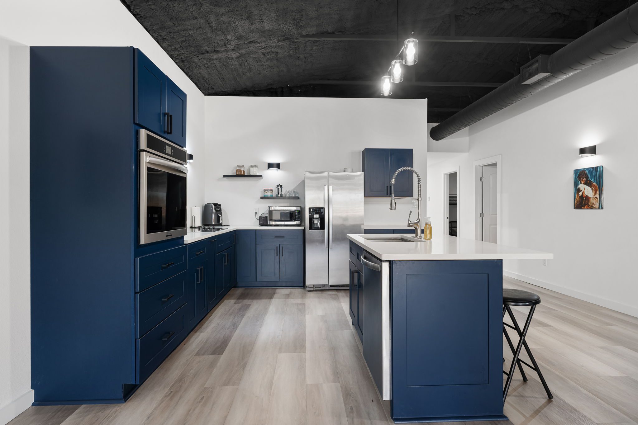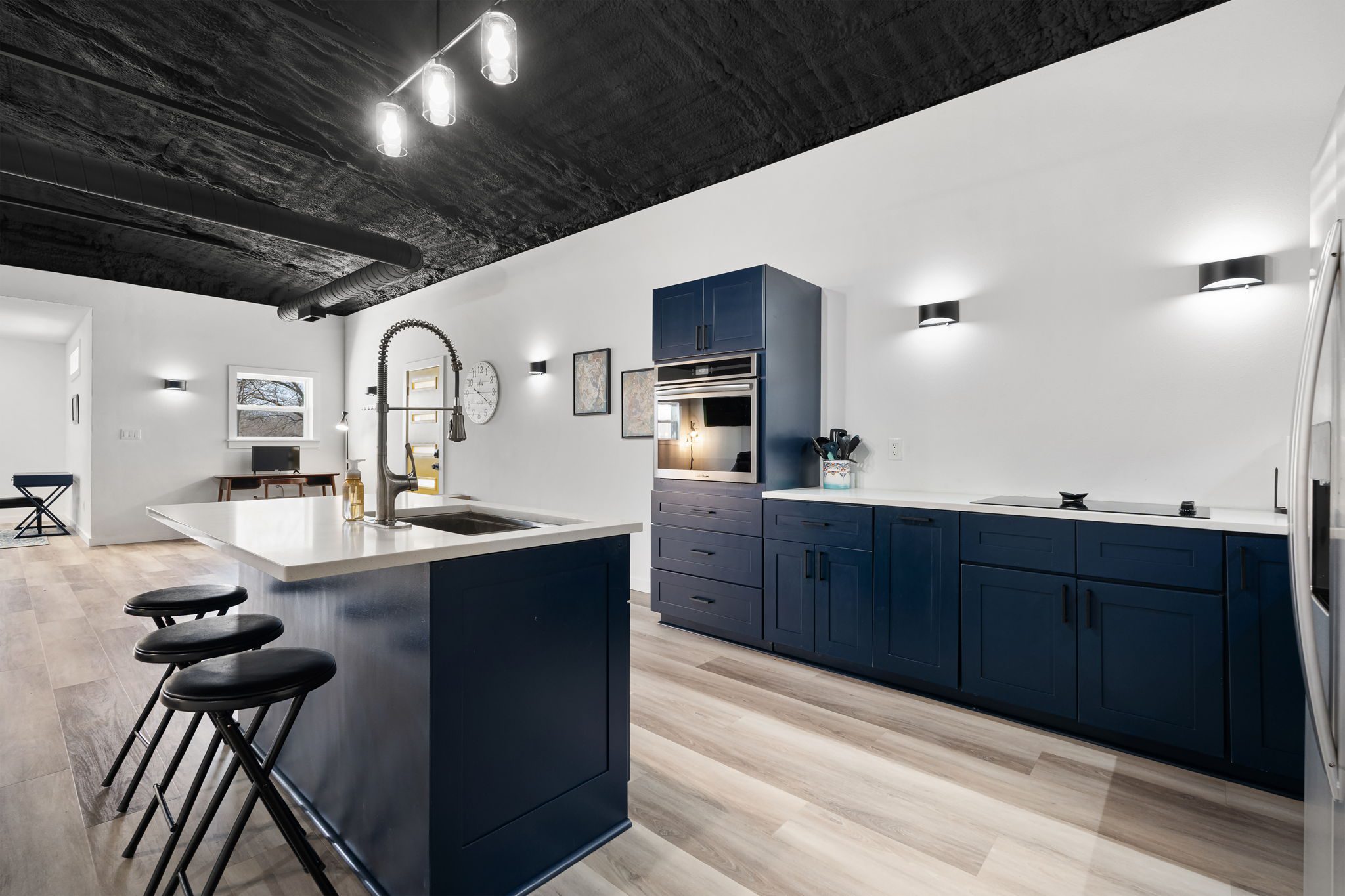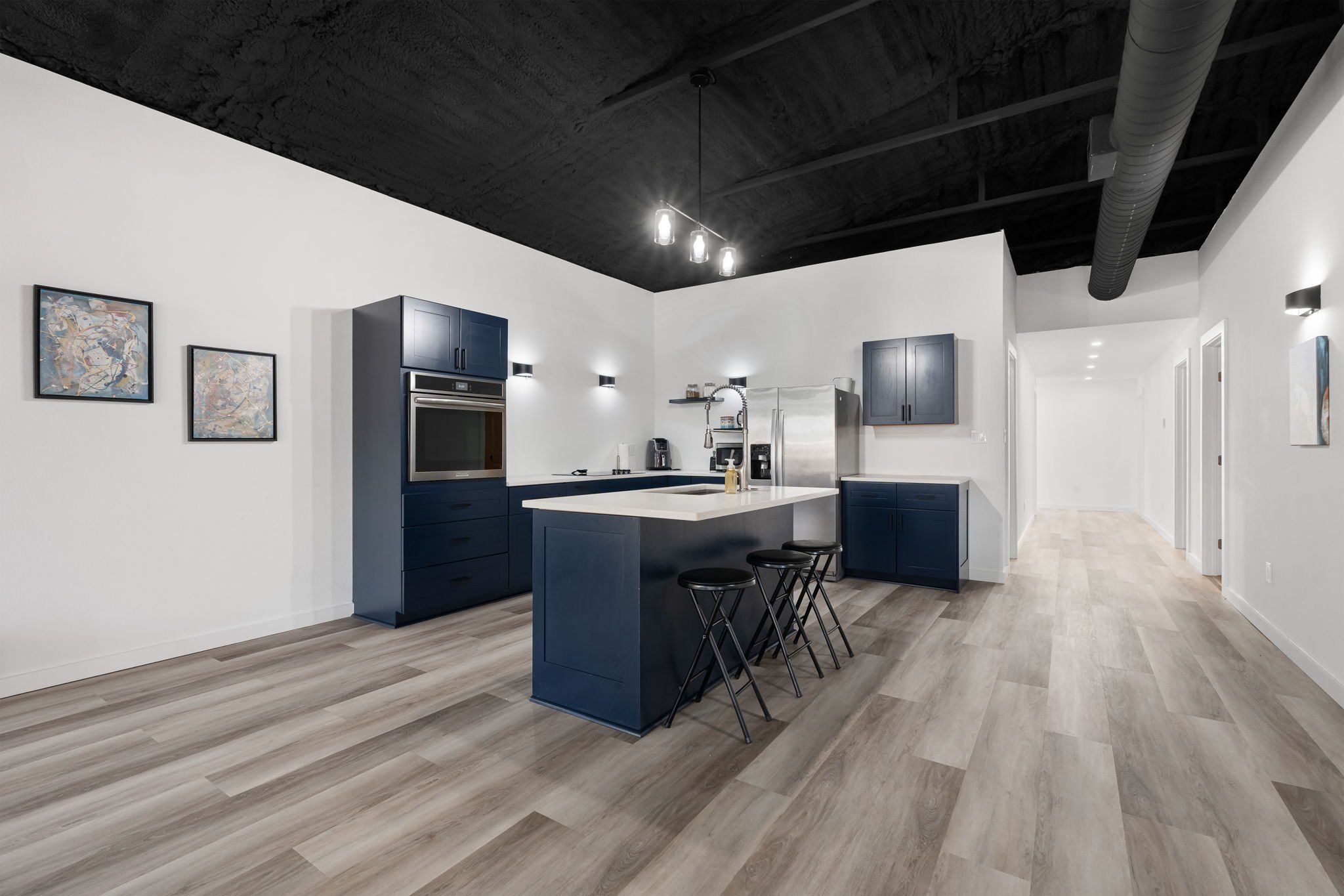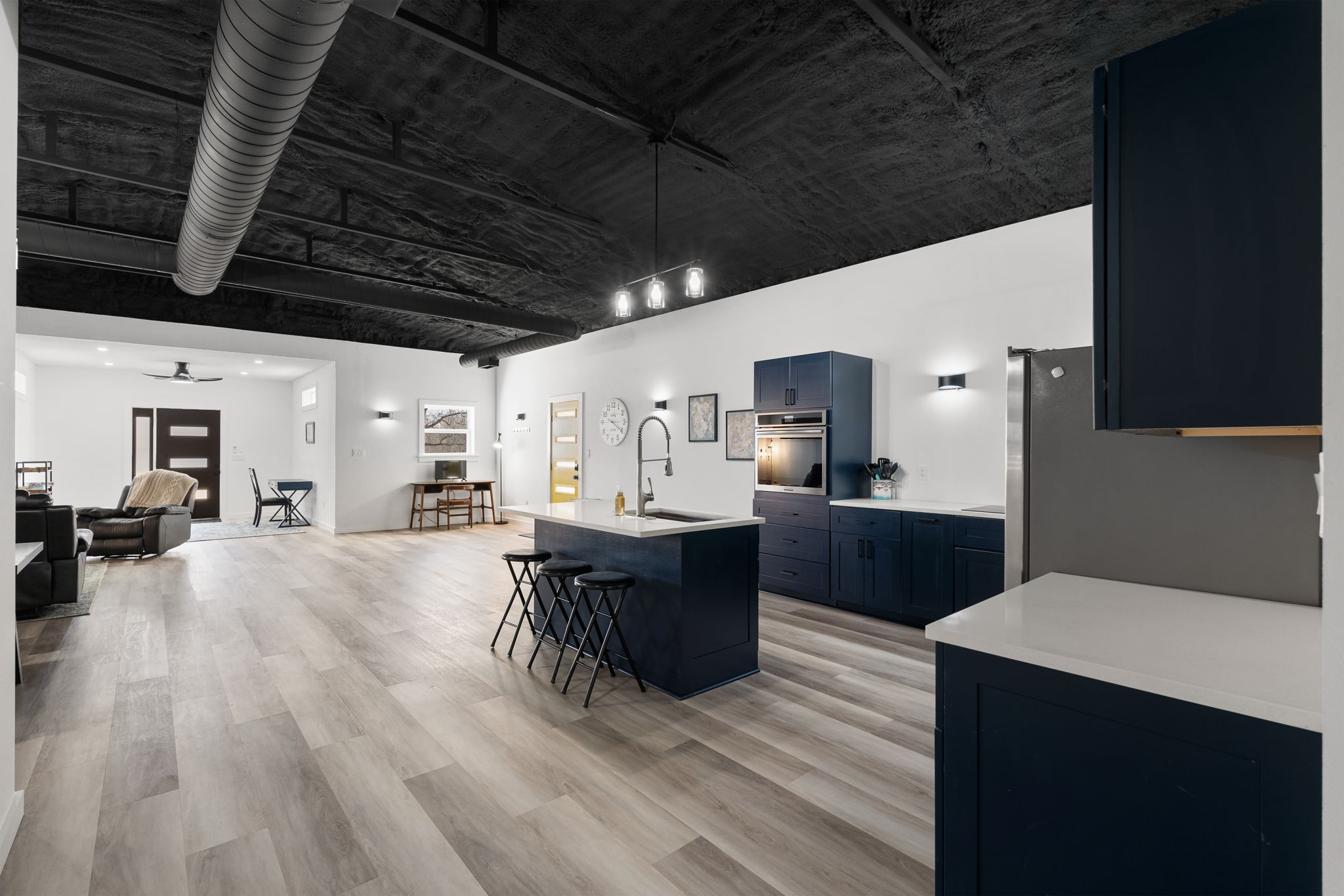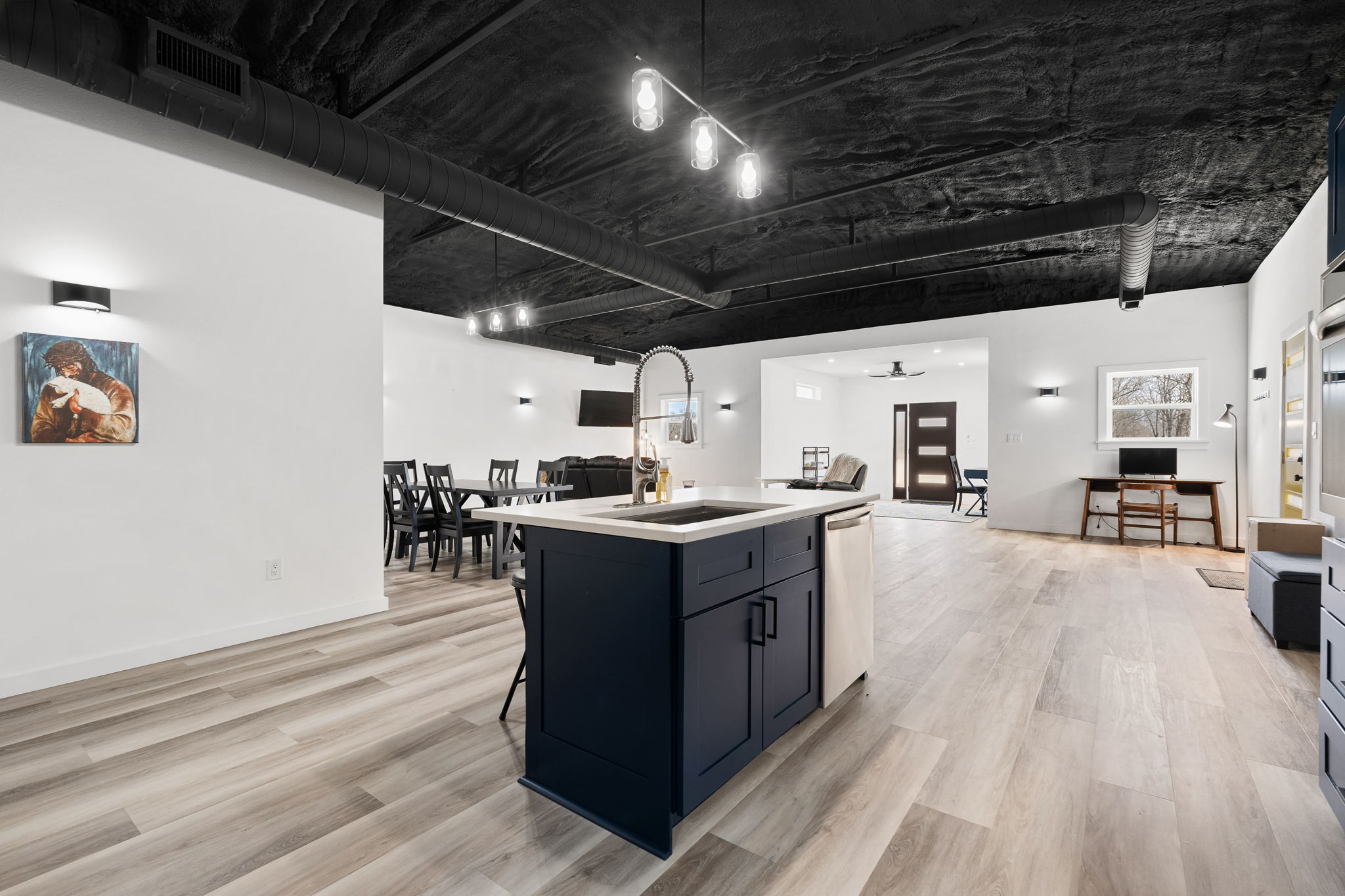 Lovely appx 44-acre retreat or home featuring a beautiful 2,064 sf, 3-bedroom, 1-bath barndominium built in 2023. This stunning property offers the perfect blend of natural beauty and modern living, with a large open kitchen featuring quartz countertops and an expansive open living area perfect for entertaining. The home has luxury plank flooring with high quality carpet in the bedrooms and porcelain tile in the bathroom. The home also includes an approximately 12×50 covered porch for relaxation and an approximately 12×50 enclosed carport for vehicles and storage. The property boasts a 3-acre pond for fishing and recreation, borders a creek offering scenic views and tranquility, and has open land ideal for building, planting, or raising livestock. Additionally, a wooded area with trails provides endless opportunities for hiking and exploration. Perfect for nature lovers seeking tranquility, families looking for space to grow, or investors interested in a unique property with potential for development.