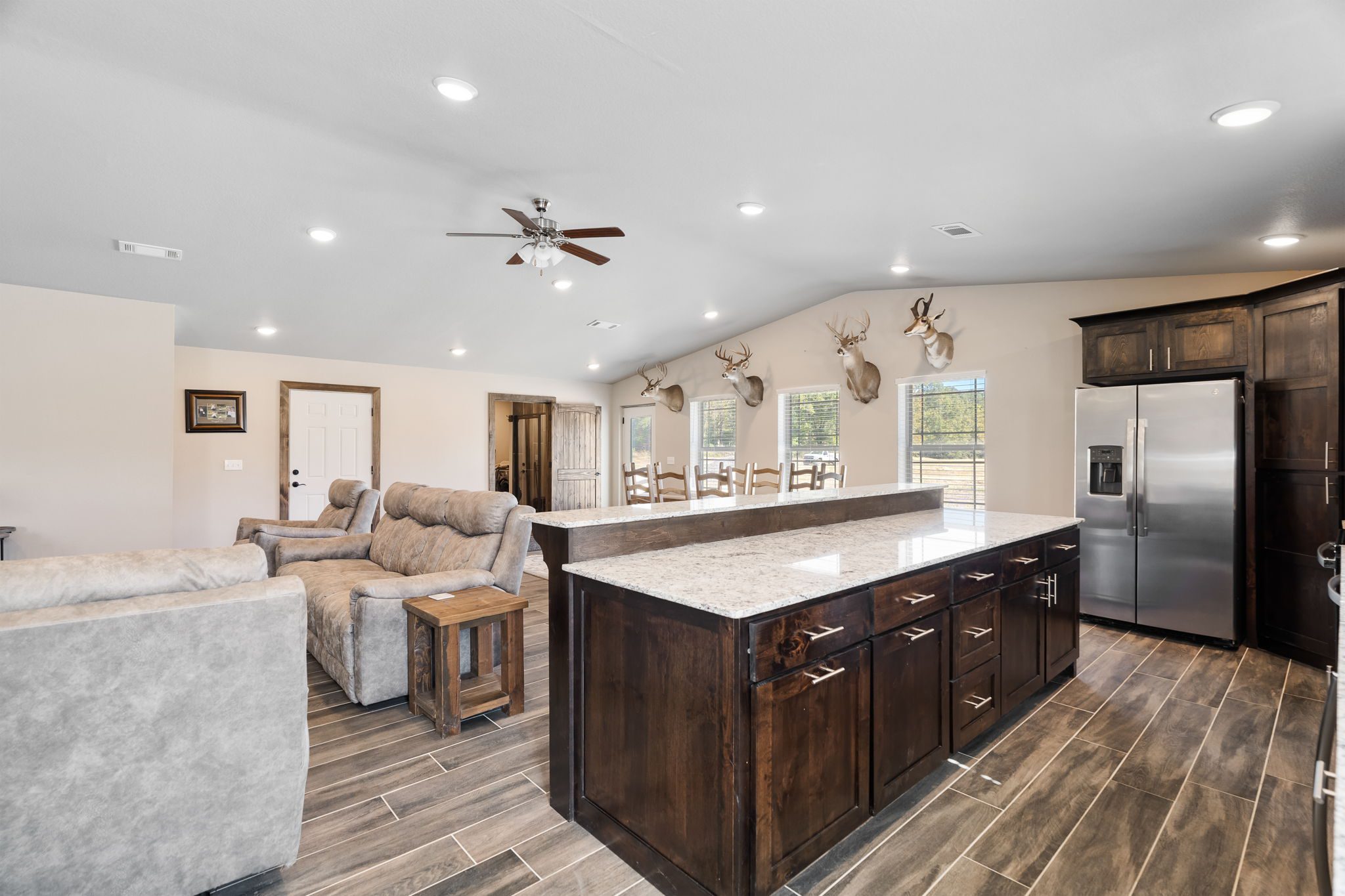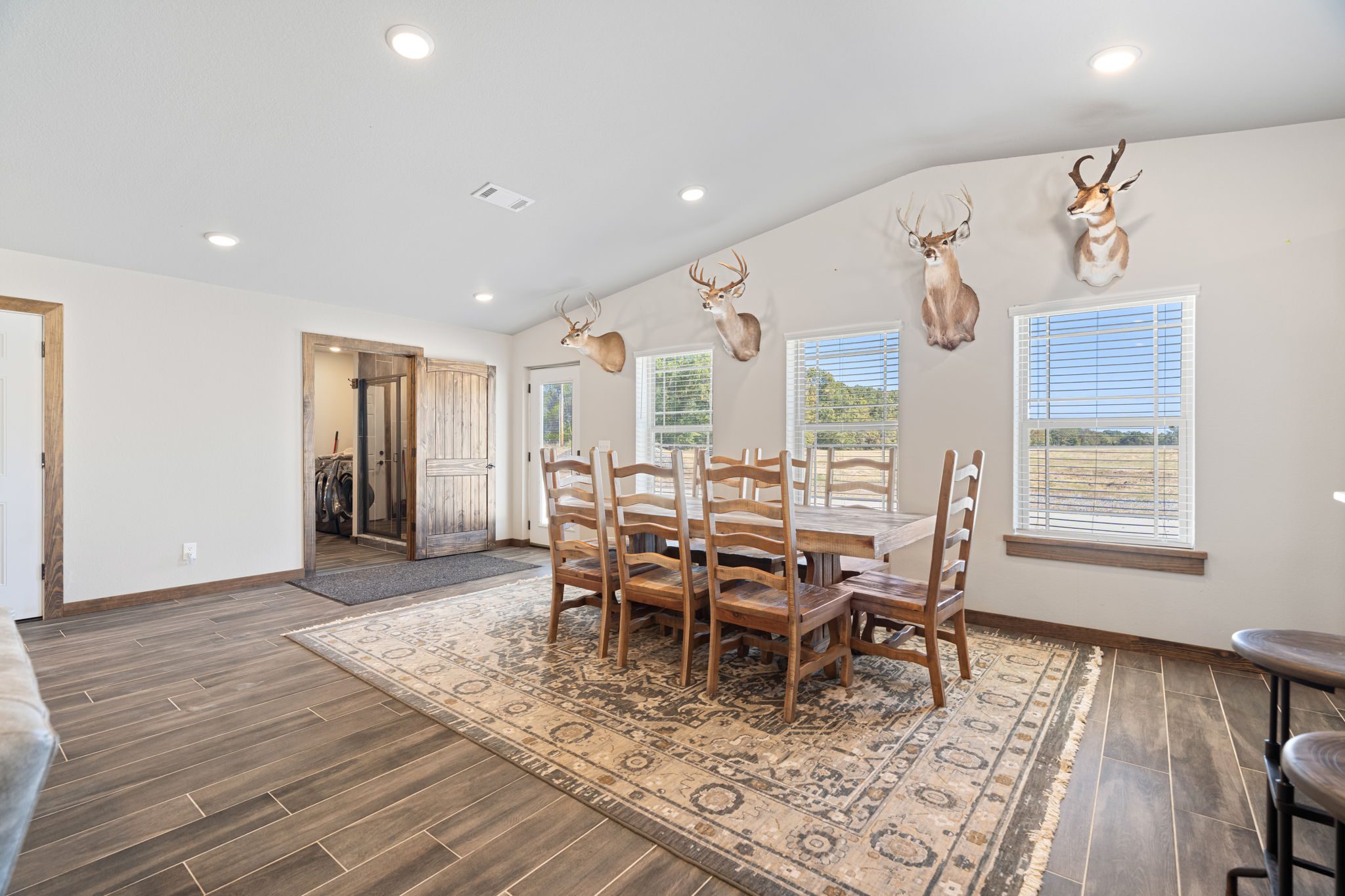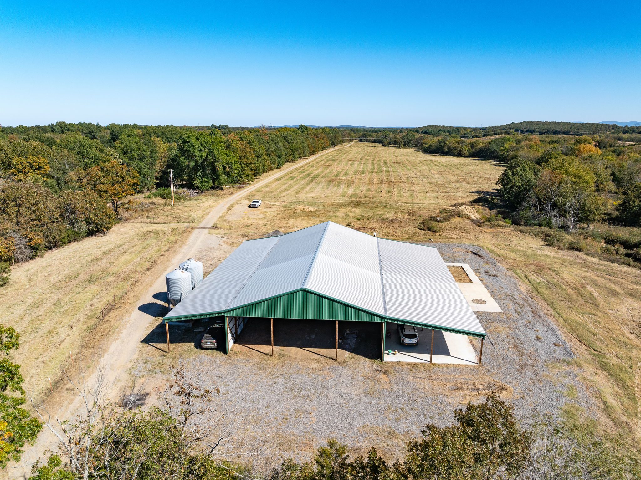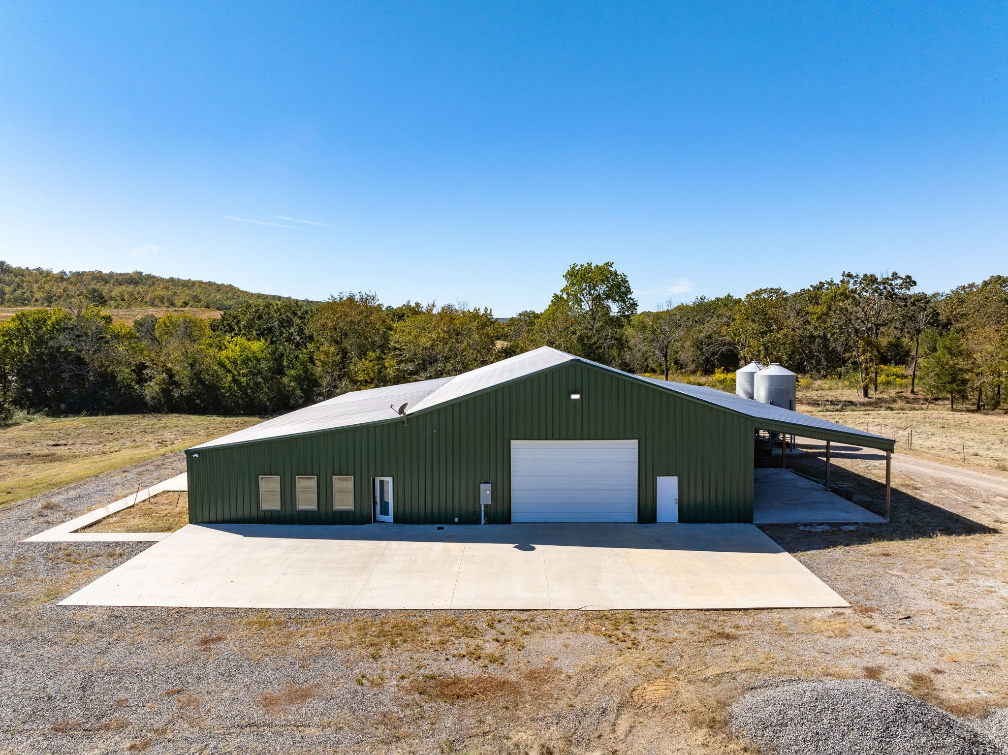 Located at 26971 School House Loop, this stunning property boasts ~312 acres of prime land and a newly constructed barndominium. The living space spans ~1,460 sq ft, featuring 2 oversized bedrooms and 1 spacious bathroom with a large walk-in shower and utility room. The property also includes an impressive ~3,000 sq ft of shop space, complete with two 12′ automatic bay doors and 22′ ceilings, offering plenty of storage.