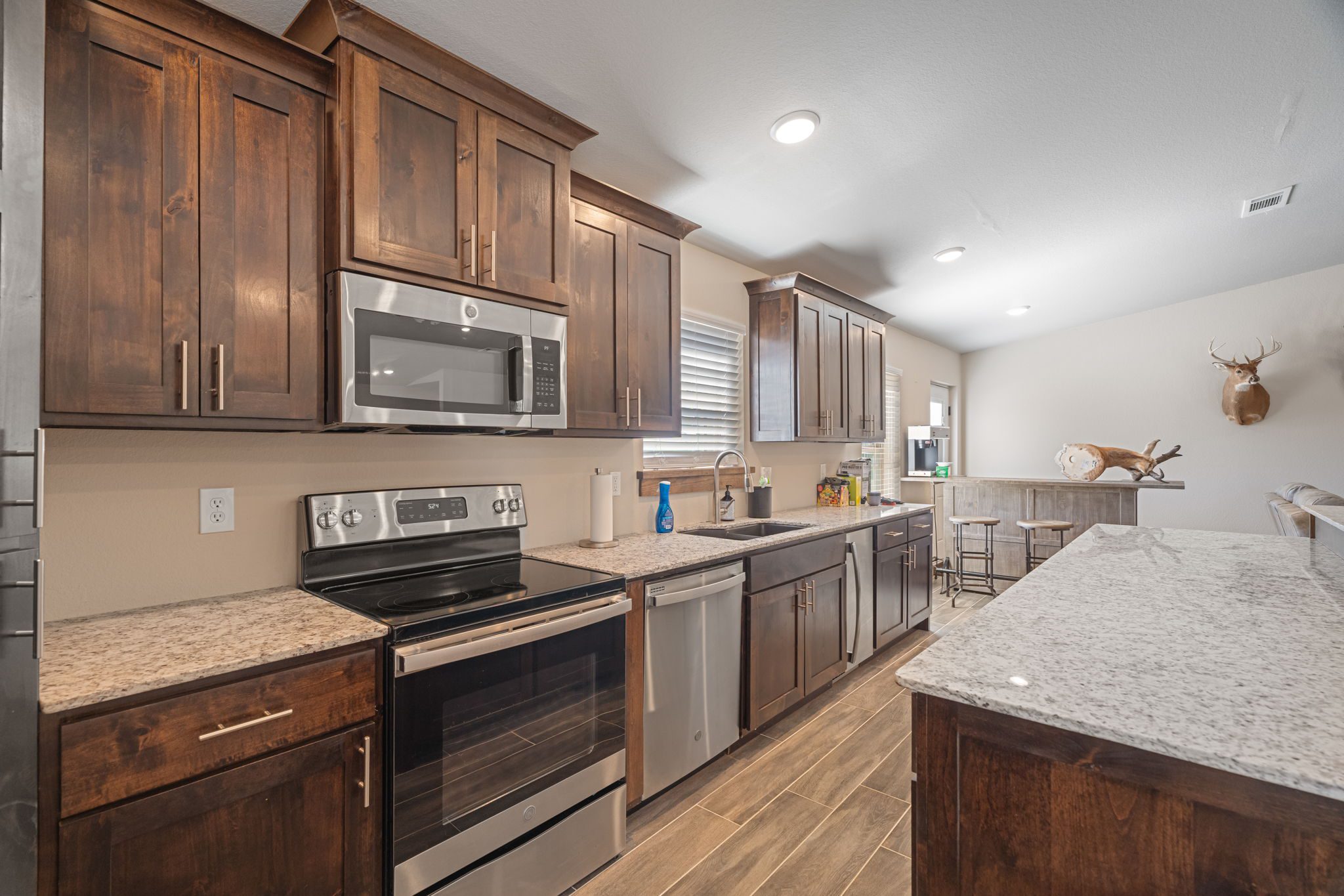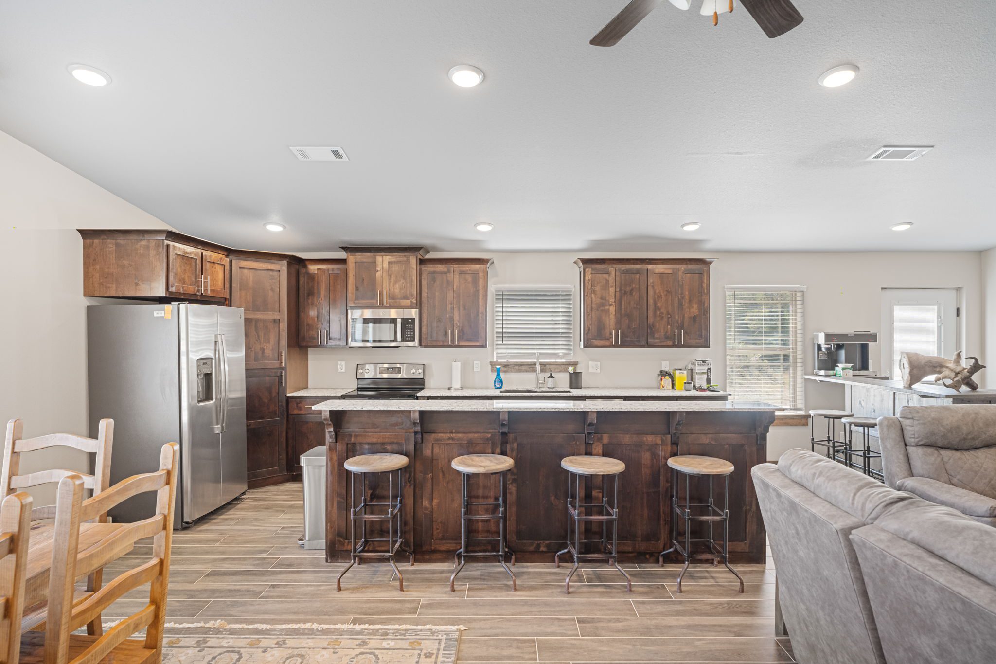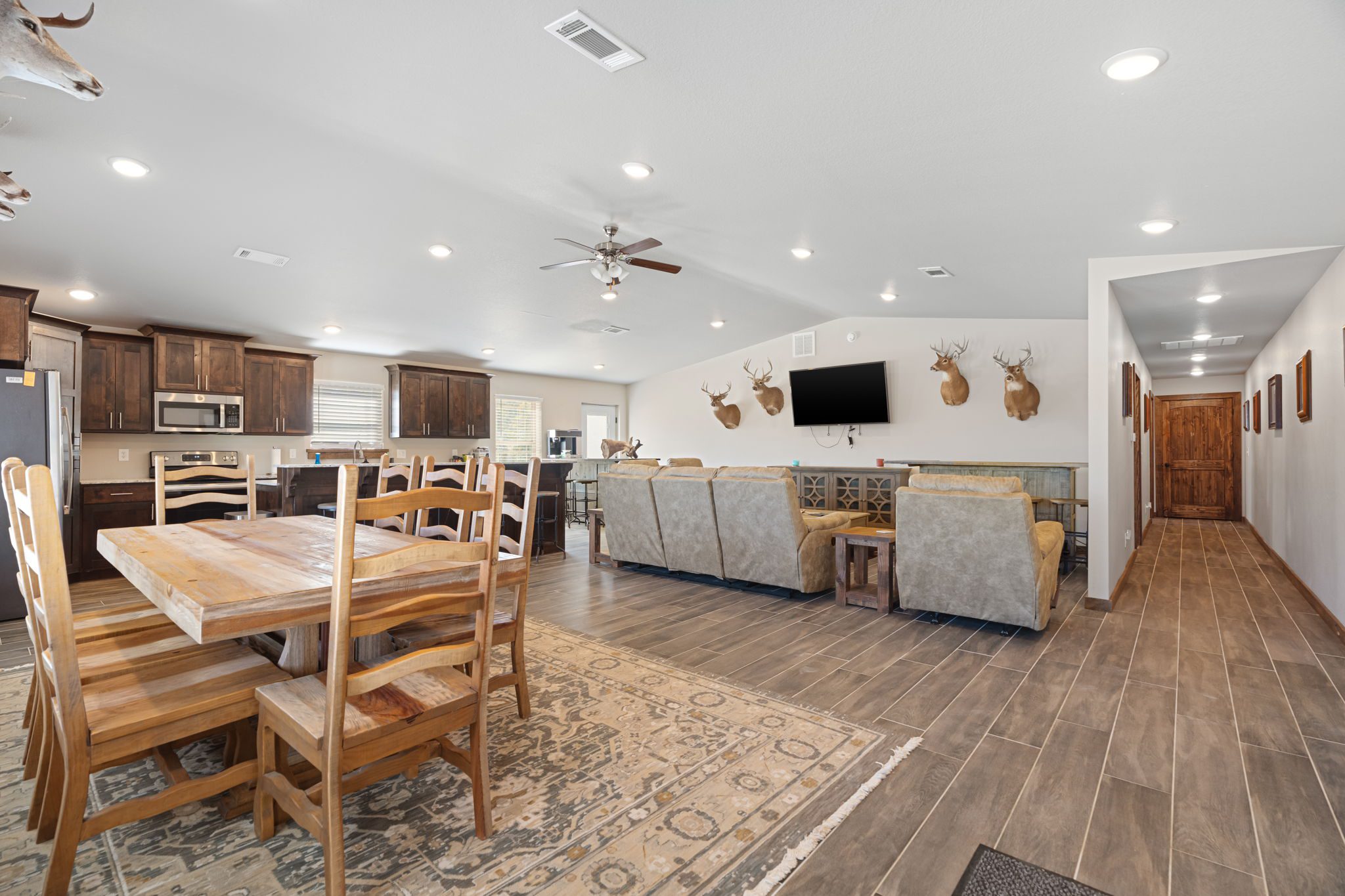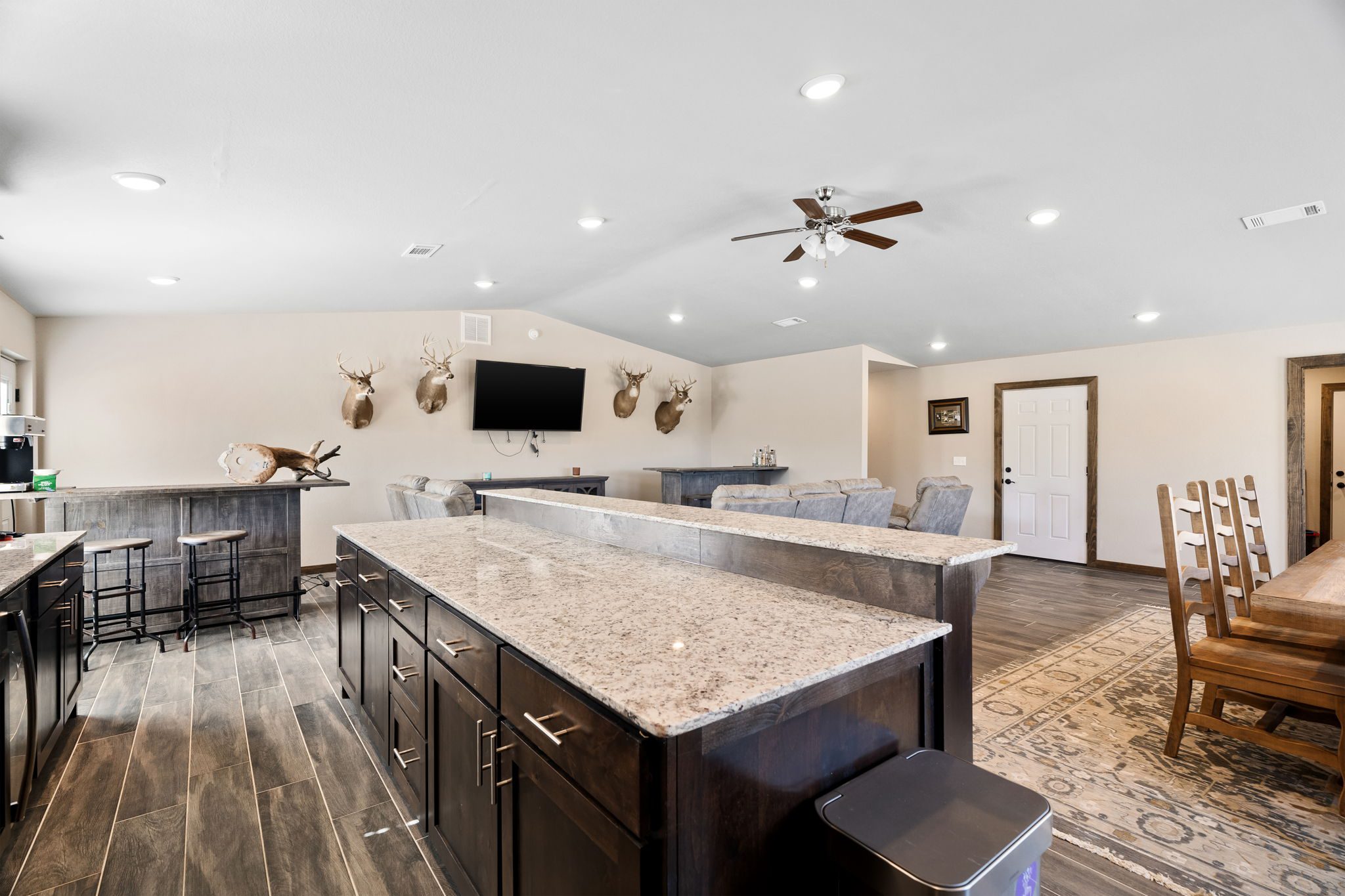 Located at 26971 School House Loop, this stunning property boasts ~312 acres of prime land and a newly constructed barndominium. The living space spans ~1,460 sq ft, featuring 2 oversized bedrooms and 1 spacious bathroom with a large walk-in shower and utility room. The property also includes an impressive ~3,000 sq ft of shop space, complete with two 12′ automatic bay doors and 22′ ceilings, offering plenty of storage.