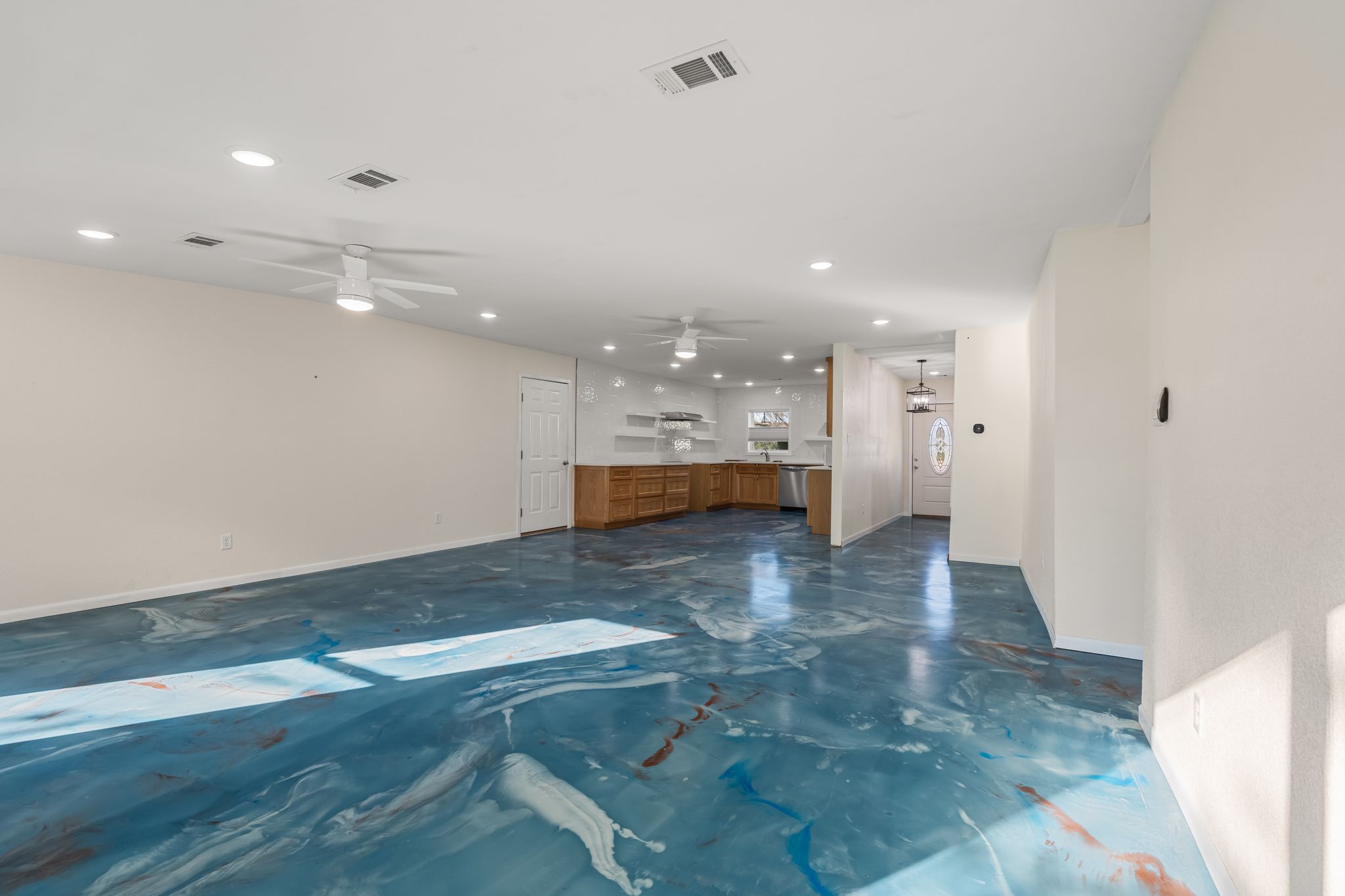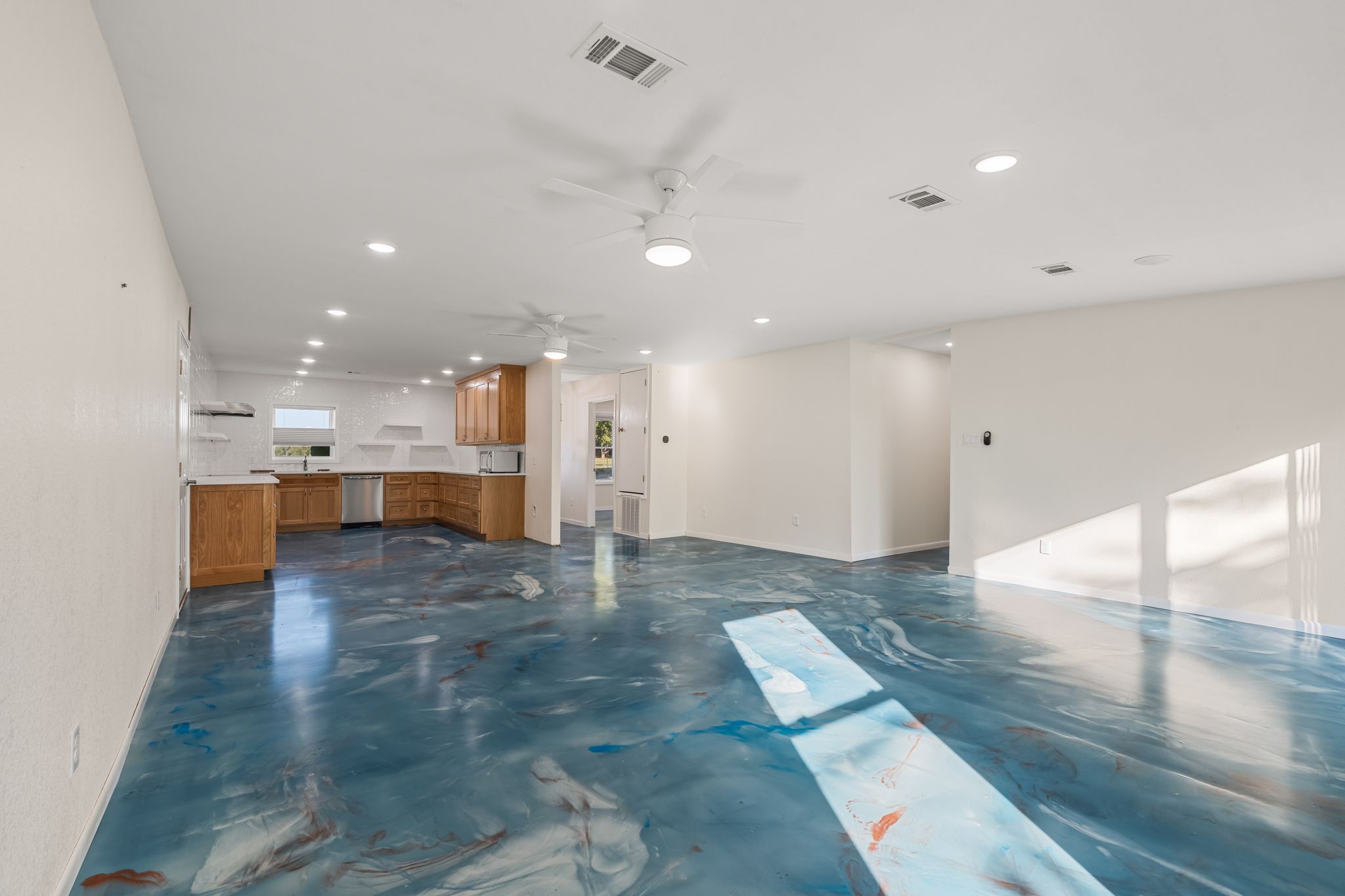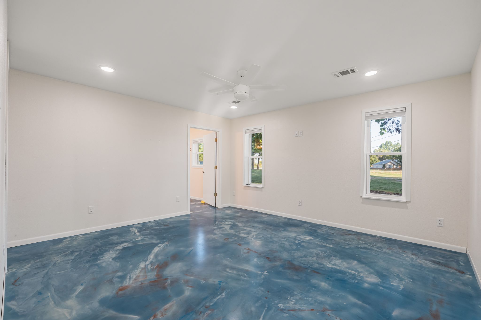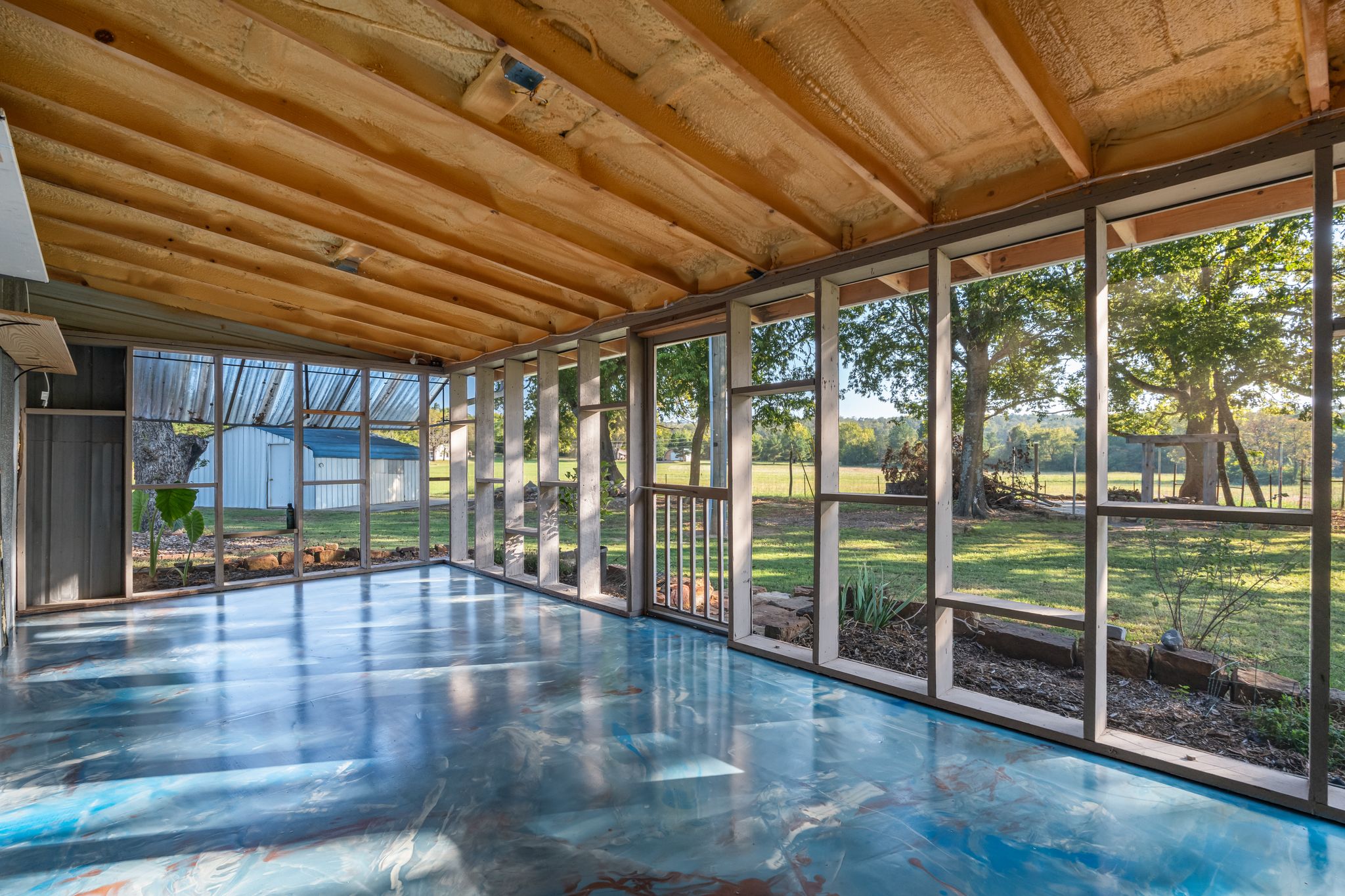 Like-new home built in 2023 offering 1,900 square feet of modern living space on 1.5 beautiful acres just east of Greenwood! This 2-bedroom, 2-bathroom property combines style, functionality, and privacy. The home features seamless epoxy floors throughout, giving it a clean and polished finish. The open-concept design provides bright, comfortable living areas and a spacious kitchen perfect for entertaining. Outside, the property is fully fenced with an automatic gate for added convenience and security. Additional features include a greenhouse and an RV carport, ideal for hobbies or extra storage. Enjoy country living with modern amenities in a great location close to town!